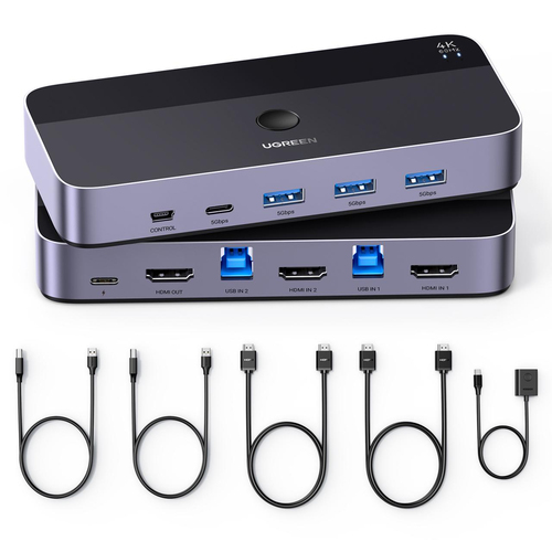 Switch Ugreen , 3840x2160 Pixeles, 4K Ultra HD, Hasta 2 Dispositivos, Negro, Gris