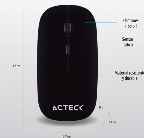 Mouse Optico Inalambrico Acteck ENTRY Mi240, 2 Botones, 1200 DPI, USB, Negro
