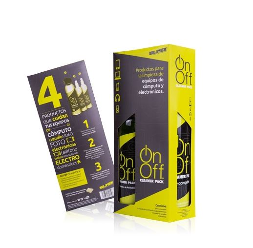 KIT LIMPIEZA ON-OFF SILIMEX, Aire 660ml Locion superficies 250ml, Limpia Pantallas 250ml y 2 Microfibras